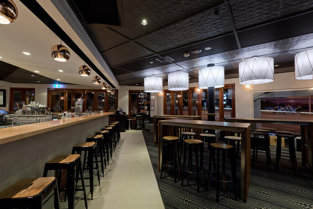 Functions of 6-12 people can be booked on our low slung coffee table section. The area has a menagerie of comfy cushioned seating and stylish coffee tables, and offers great views from the concertina windows. It’s perfect for less formal occasions.